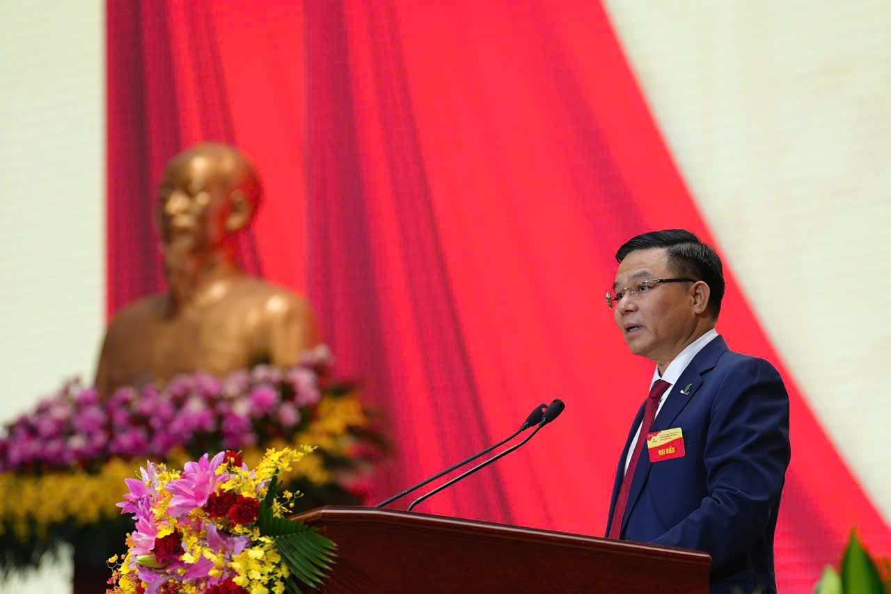 Đồng chí Lê Ngọc Sơn - Phó Bí thư Đảng ủy, Tổng Giám đốc Tập đoàn trình bày báo cáo chính trị tại Đại hội