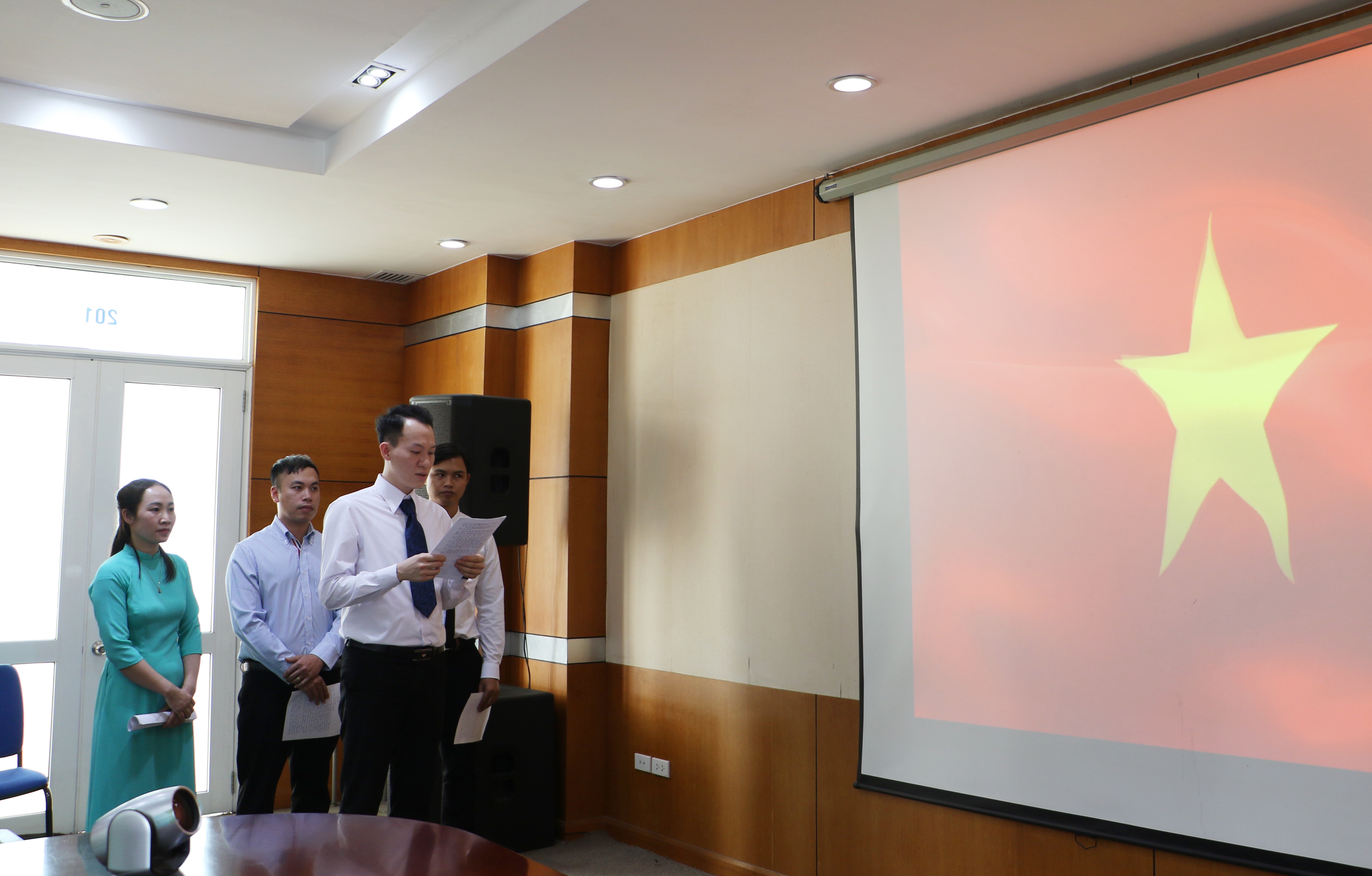 Dưới cờ Tổ quốc và cờ Đảng, 4 đồng chí đảng viên mới đã tuyên thệ: Tuyệt đối trung thành với lý tưởng và mục tiêu cách mạng của Đảng, chấp hành nghiêm chỉnh Cương lĩnh chính trị, Điều lệ Đảng, Nghị quyết, Chỉ thị của Đảng, chính sách pháp luật của Nhà nước, thực hiện tốt nhiệm vụ người đảng viên, tiếp tục phấn đấu, nêu cao tinh thần trách nhiệm, nỗ lực hơn nữa để trở thành đảng viên chính thức của Đảng Cộng sản Việt Nam.