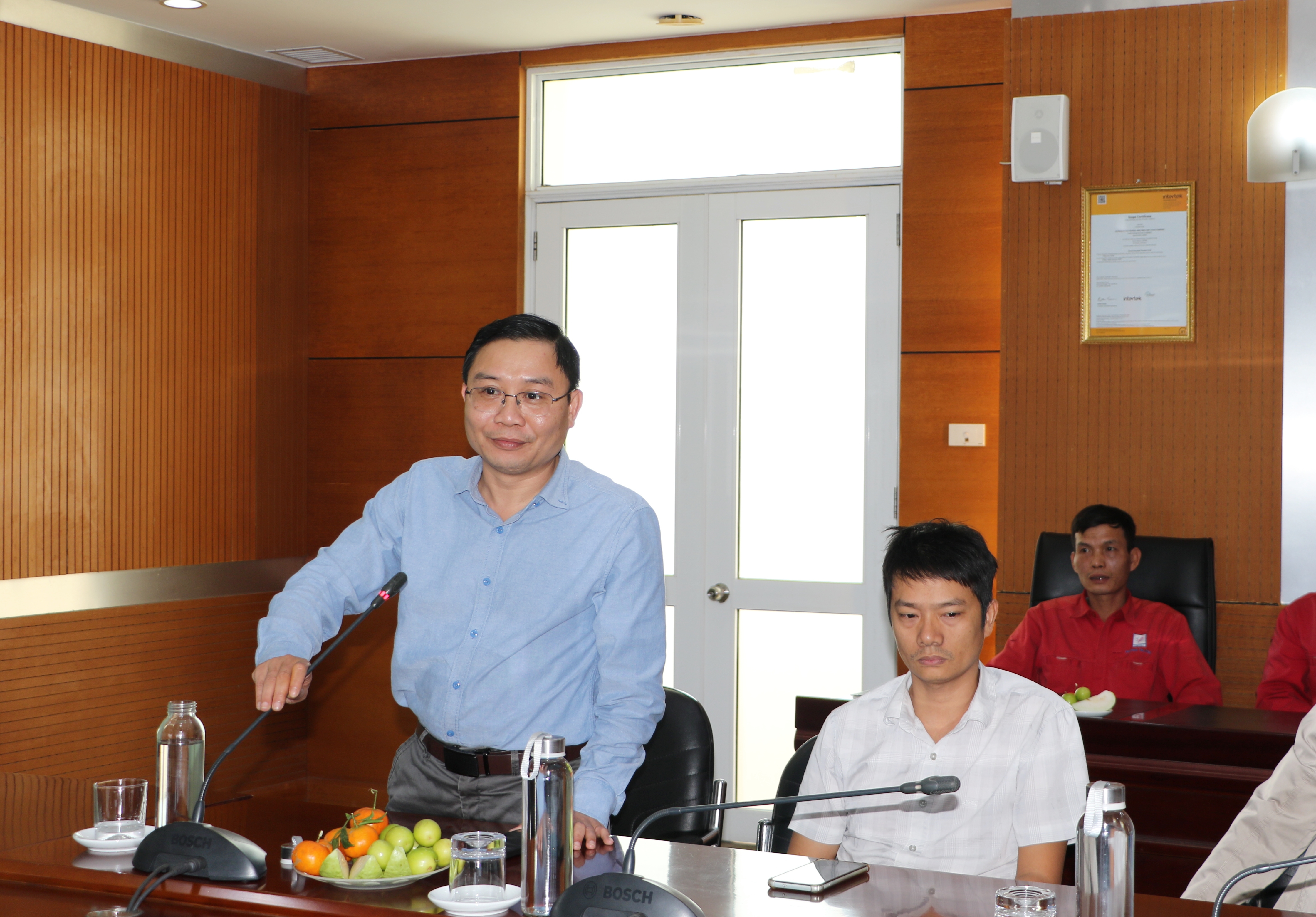 Đồng chí Trần Huy Thư – Bí thư Đảng ủy, Thành viên HĐQT, Tổng Giám đốc Công ty và đồng chí Đào Đình Huy – Phó Bí thư Đảng ủy, Thành viên HĐQT, Phó Tổng Giám đốc Công ty chúc mừng các đồng chí đảng viên mới đã vinh dự được đứng trong hàng ngũ của Đảng Cộng sản Việt Nam