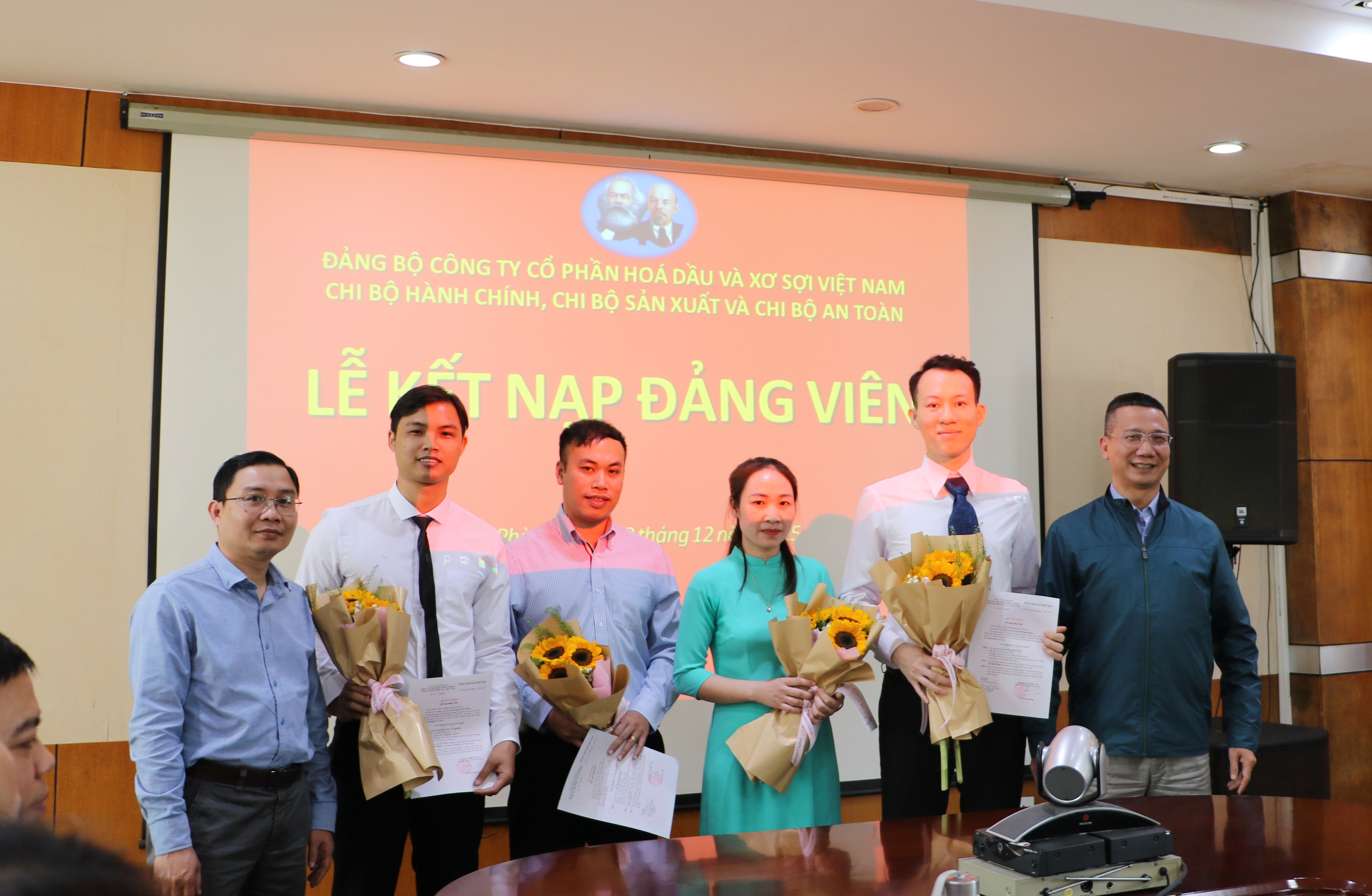 Chiều ngày 19/12, Đảng bộ Công ty Cổ phần Hóa dầu và Xơ sợi Việt Nam (VNPOLY) trang trọng tổ chức lễ kết nạp đảng cho 4 quần chúng ưu tú vào Đảng Cộng sản Việt Nam.