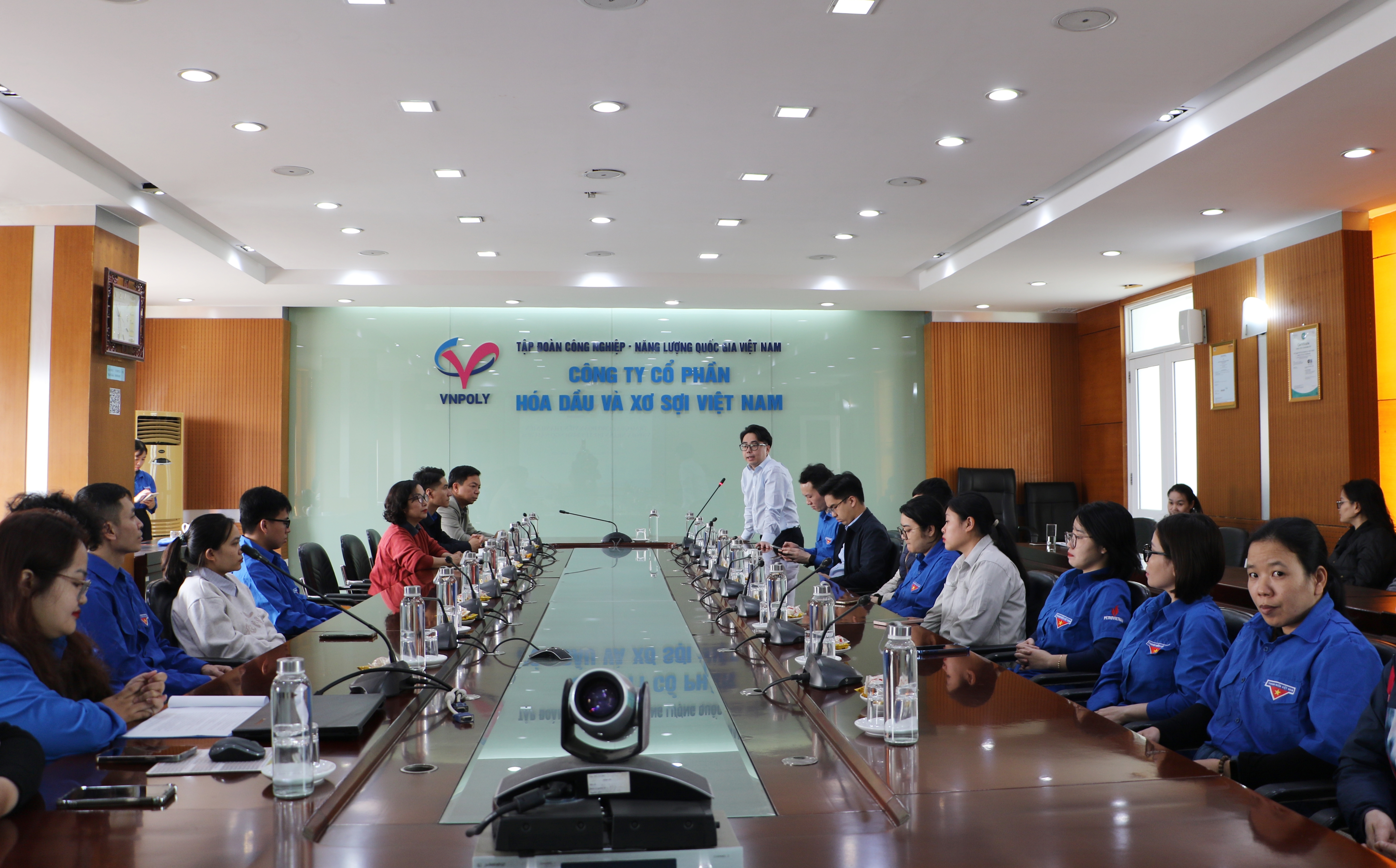 Tiếp đoàn công tác, về phía VNPOLY có: đồng chí Đỗ Đức Thắng – Phó Tổng Giám đốc; đồng chí Trần Thị Hoa – Chủ tịch Công đoàn Công ty; đồng chí Bùi Mạnh Hùng – Bí thư Đoàn Thanh niên cùng các đồng chí trong Ban Chấp hành Đoàn Thanh niên và đông đảo đoàn viên thanh niên là người lao động VNPOLY.