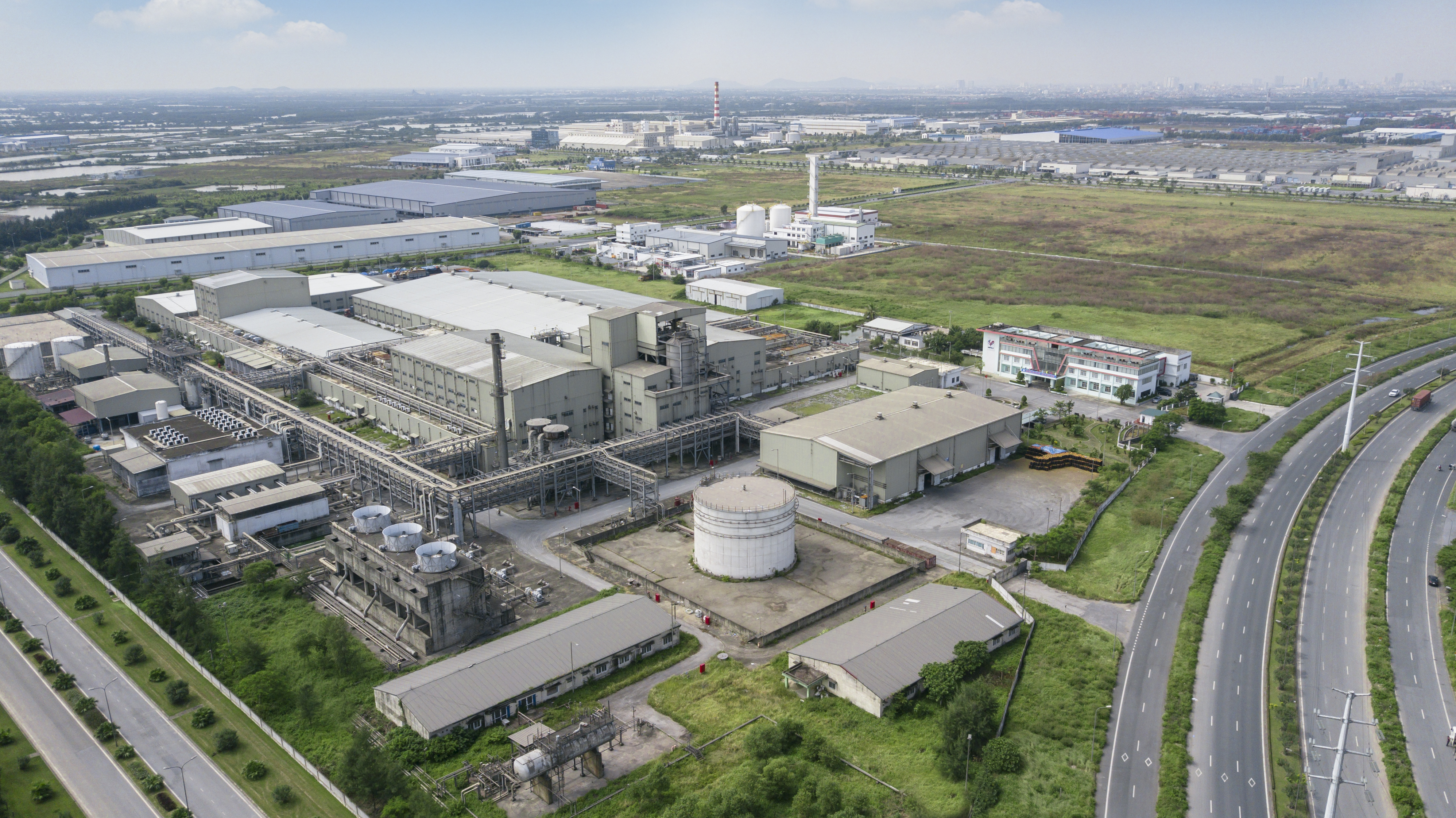 Quang cảnh trụ sở và Nhà máy sản xuất xơ sợi polyester Đình vũ của VNPOLY nhìn từ trên cao
