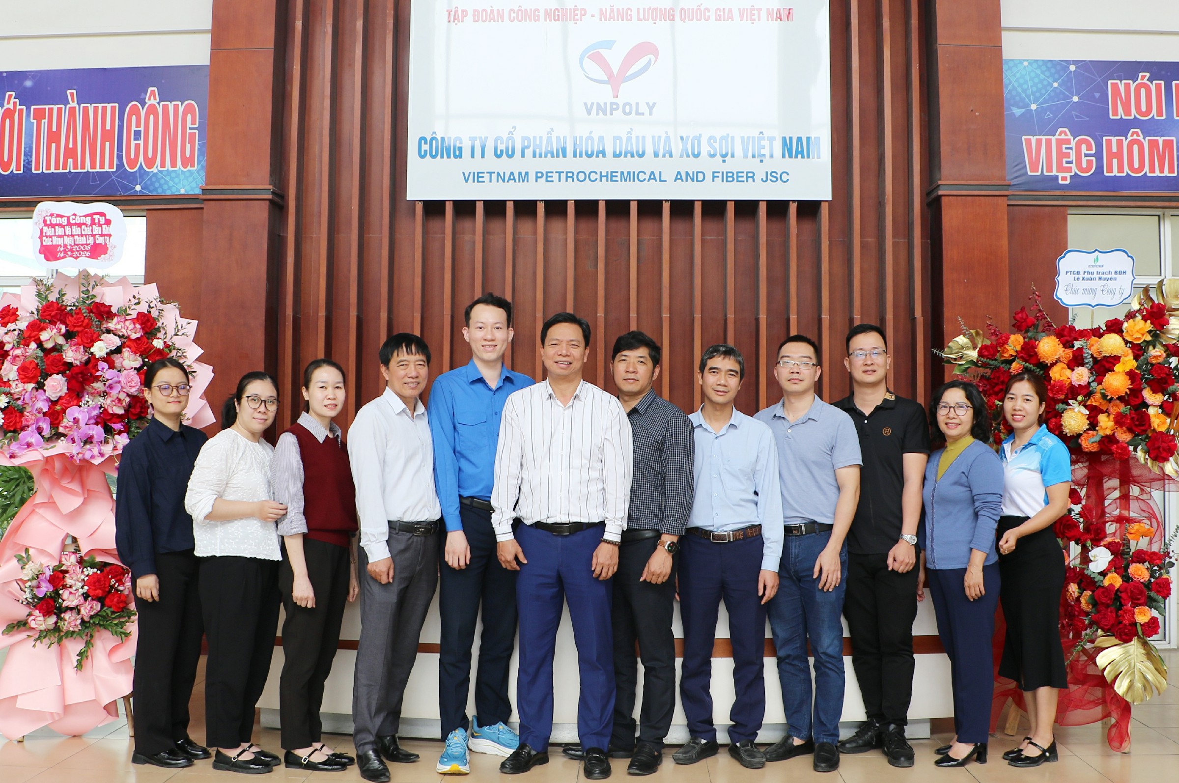 Nhân dịp này, tập thể lãnh đạo và người lao động VNPOLY vinh dự được đón nhận lẵng hoa chúc mừng của ông Lê Xuân Huyên – Phó Tổng Giám đốc Phụ trách Ban Điều hành Tập đoàn Công nghiệp – Năng lượng Quốc gia Việt Nam (Petrovietnam) và lẵng hoa chúc mừng của Ban Lãnh đạo Tổng Công ty Phân bón và Hóa chất Dầu khí (PVFCCo). Đây là những món quà hết sức ý nghĩa, là sự khích lệ, động viên rất lớn của Ban Lãnh đạo hai Cổ đông lớn đối với tập thể lãnh đạo và người lao động VNPOLY.