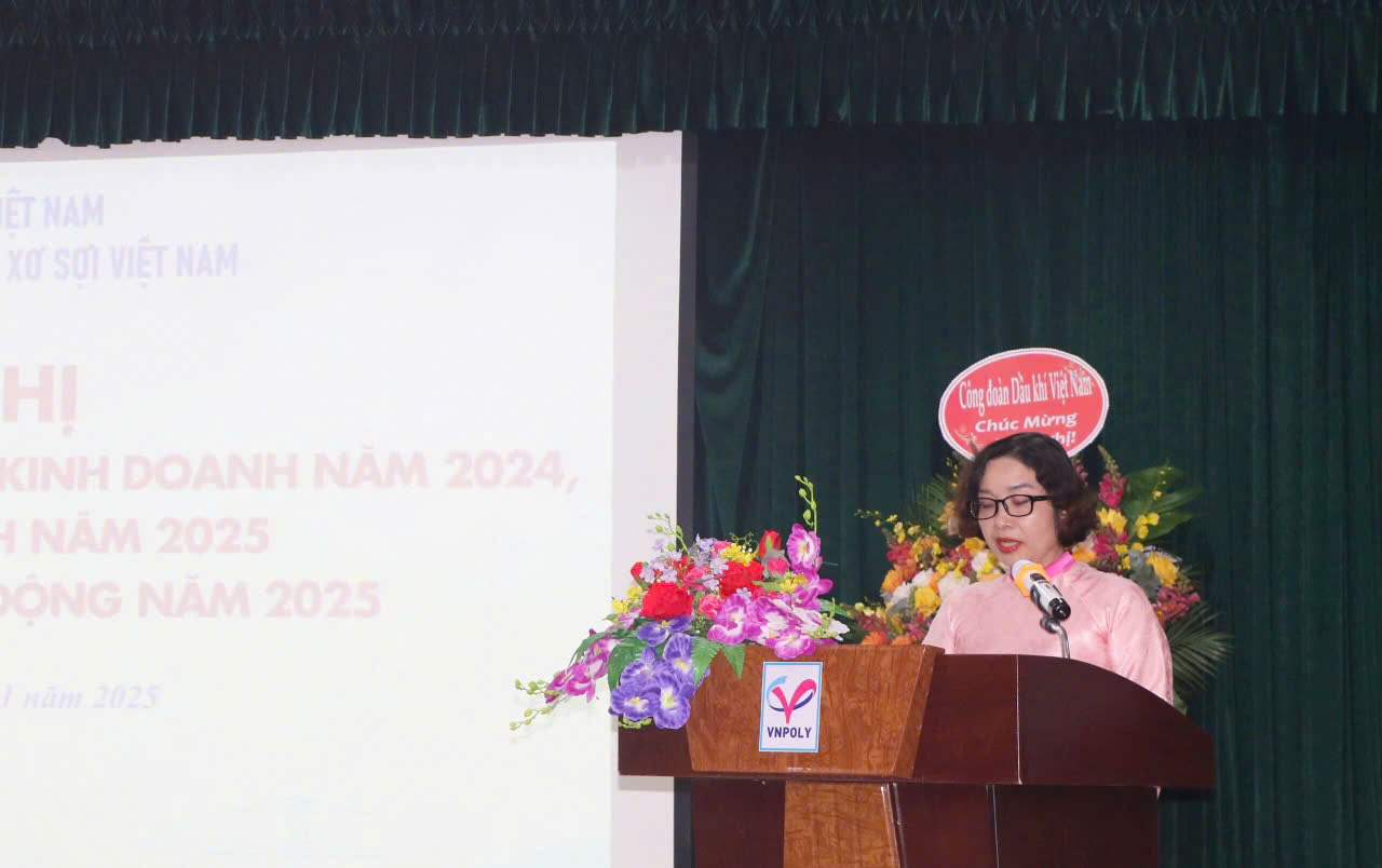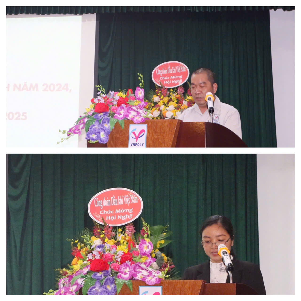 Tại Hội nghị, bà Trần Thị Hoa – Chủ tịch Công đoàn Công ty trình bày báo cáo Tổng kết hoạt động Công đoàn năm 2024. Năm qua, mặc dù có nhiều khó khăn, song công tác chăm lo đời sống CBCNV luôn được lãnh đạo các cấp quan tâm, tạo điều kiện để Công đoàn VNPOLY tổ chức và tham gia nhiều hoạt động, phong trào có ý nghĩa, đảm bảo công tác chăm lo đời sống người lao động. Vào các dịp lễ, Tết, người lao động VNPOLY luôn được Tập đoàn – Công đoàn Dầu khí Việt Nam, Công ty – Công đoàn Công ty quan tâm, hỗ trợ, động viên kịp thời.