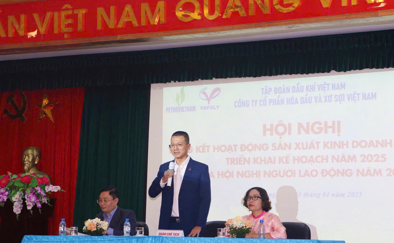 Thay mặt Ban Lãnh đạo và toàn thể CBCNV VNPOLY, ông Trần Huy Thư – Tổng Giám đốc Công ty trân trọng gửi lời cảm ơn tới Ban Lãnh đạo Tập đoàn, Công đoàn Dầu khí Việt Nam và khẳng định sẽ nghiêm túc tiếp thu các ý kiến chỉ đạo của Phó Tổng Giám đốc Tập đoàn tại Hội nghị về công tác chuyên môn nghiệp vụ thuộc hoạt động SXKD cũng như ý kiến góp ý về chế độ chính sách cho người lao động của Phó Chủ tịch Công đoàn DKVN. Tổng Giám đốc VNPOLY mong muốn, trong những tháng đầu năm 2025, Tập đoàn – Công đoàn DKVN sẽ hỗ trợ mạnh mẽ cho VNPOLY về mặt cơ chế chính sách để VNPOLY hoàn thành bản kế hoạch năm 2025 phù hợp với tình hình thực tiễn của doanh nghiệp cũng như phù hợp với định hướng phát triển của Tập đoàn Dầu khí Quốc gia Việt Nam đến năm 2030, tầm nhìn đến năm 2050.
