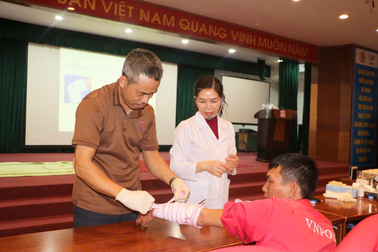 Nhằm trang bị các kỹ năng sơ cấp cứu cần thiết và giúp người lao động (NLĐ) kịp thời xử lý các tình huống tai nạn không may xảy ra, từ ngày 27-28/11/2024, Công ty Cổ phần Hóa dầu và Xơ sợi Việt Nam (VNPOLY) tổ chức khóa huấn luyện sơ cấp cứu cho những NLĐ là nhân viên y tế, những người tham gia lực lượng sơ cứu, cấp cứu của Công ty.