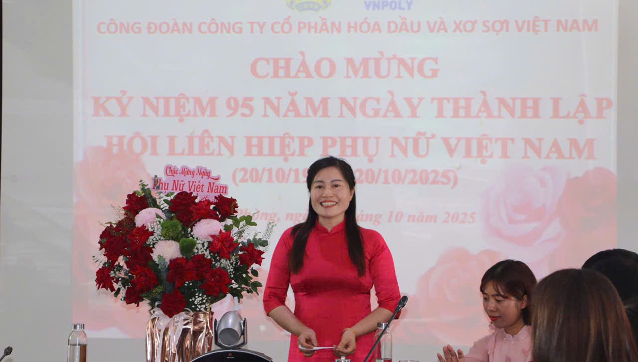 Hòa chung không khí chào mừng kỷ niệm 95 năm ngày thành lập Hội Liên hiệp Phụ nữ Việt Nam và Ngày Phụ nữ Việt Nam (20/10/1930 – 20/10/2025), được sự quan tâm ủng hộ của Ban Lãnh đạo Công ty, ngày 20/10, Công đoàn Công ty Cổ phần Hóa dầu và Xơ sợi Việt Nam (VNPOLY) tổ chức chương trình kỷ niệm đặc biệt dành cho các nữ CBCNV trong Công ty.