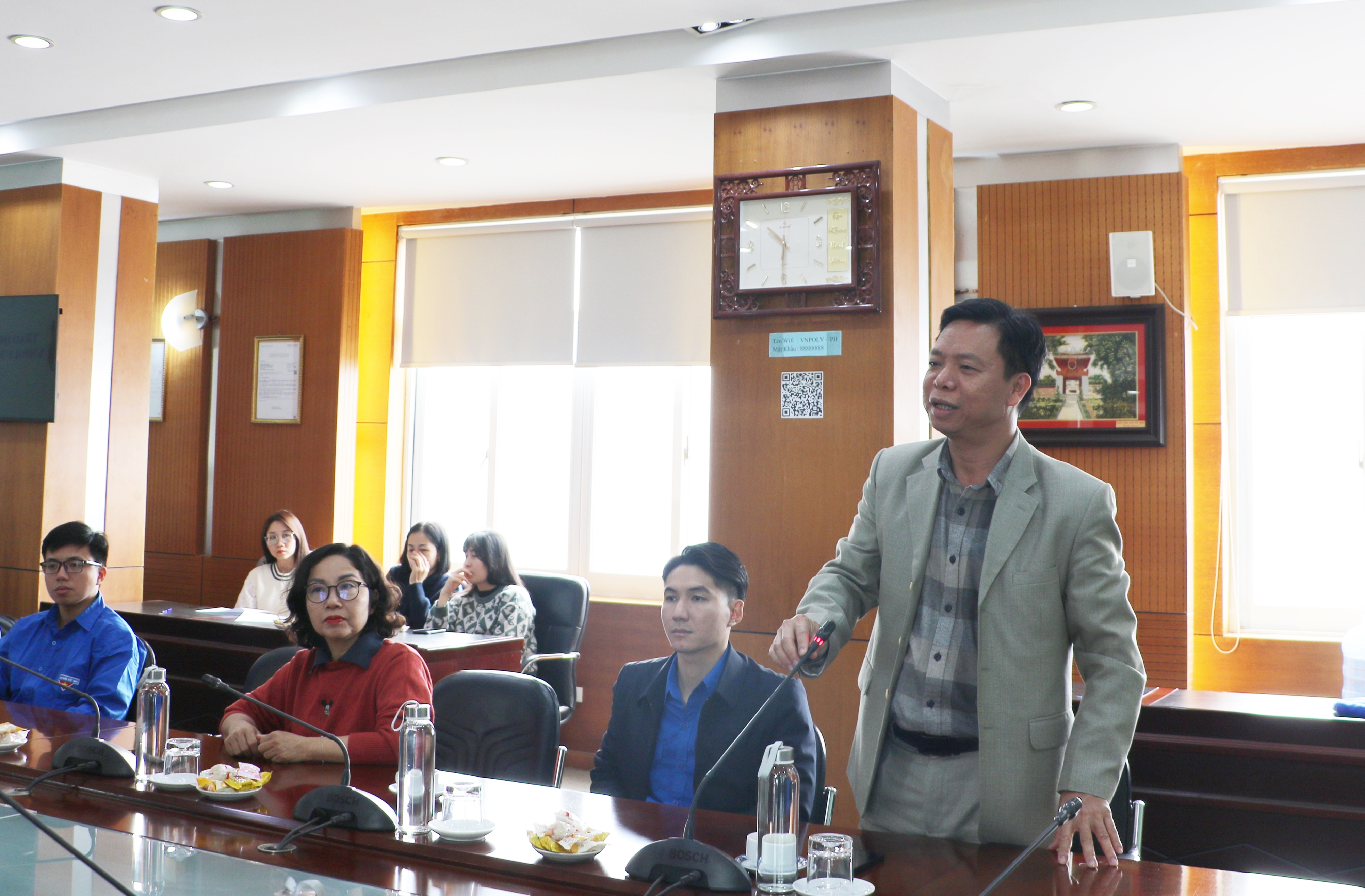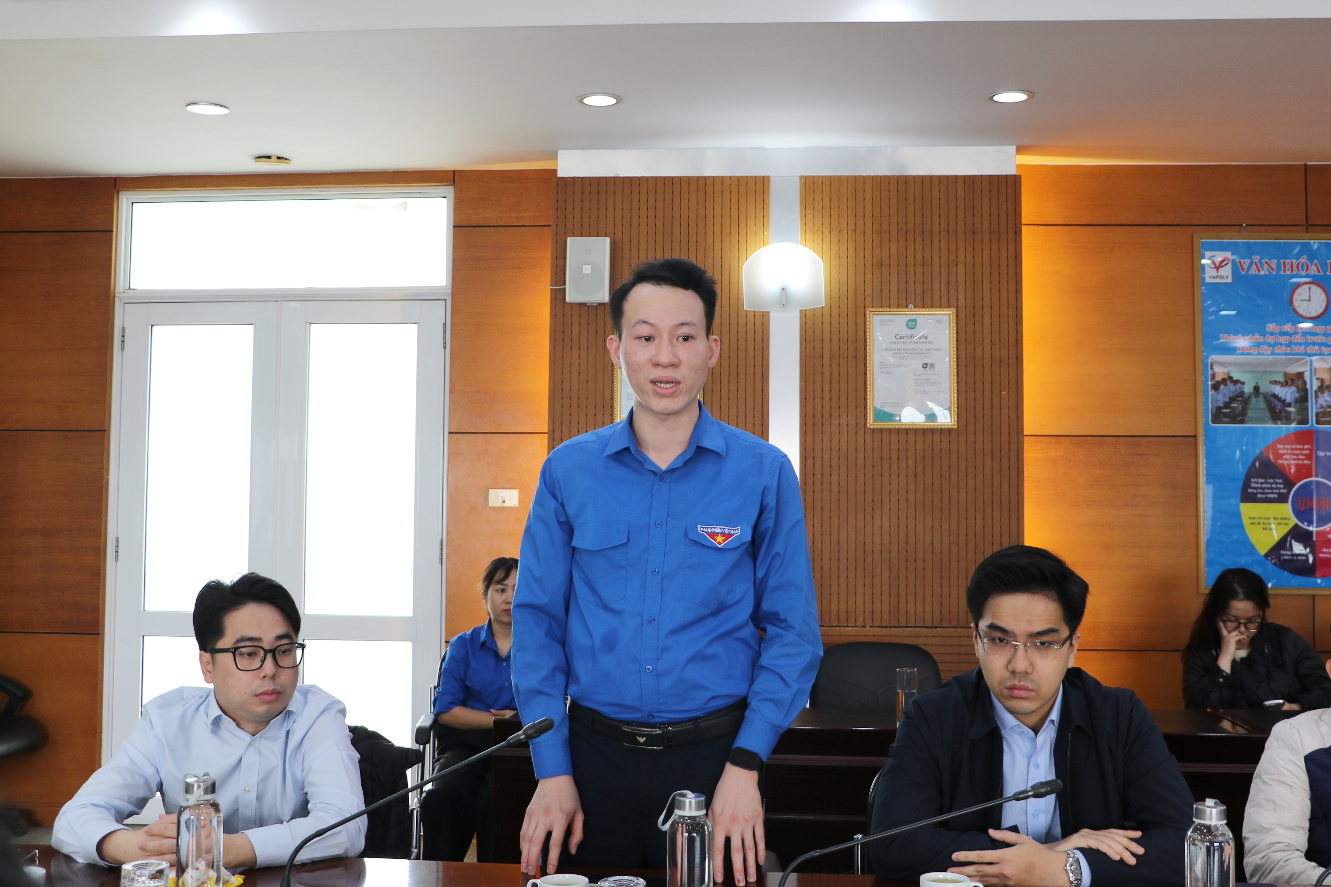 Tiếp đoàn công tác, về phía VNPOLY có: đồng chí Đỗ Đức Thắng – Phó Tổng Giám đốc; đồng chí Trần Thị Hoa – Chủ tịch Công đoàn Công ty; đồng chí Bùi Mạnh Hùng – Bí thư Đoàn Thanh niên cùng các đồng chí trong Ban Chấp hành Đoàn Thanh niên và đông đảo đoàn viên thanh niên là người lao động VNPOLY.
