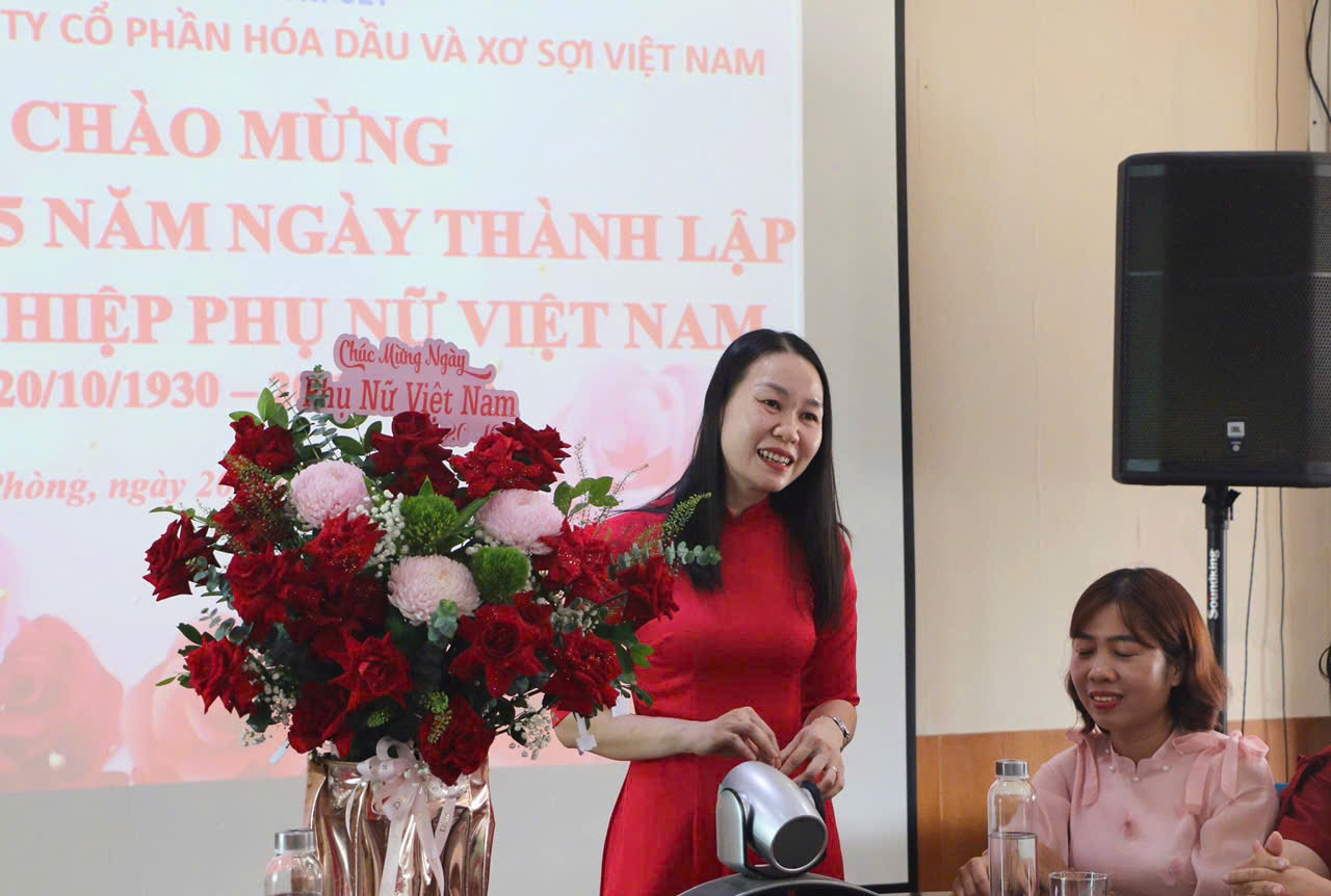 Tại đây, đại diện Ban Nữ công VNPOLY, Trưởng Ban Trần Thị Hoa đã báo cáo một số hoạt động nổi bật của các nữ CBCNV VNPOLY trong thời gian qua. Dù trong điều kiện khó khăn nhưng các nữ CBCNV VNPOLY không chỉ hoàn thành công việc chuyên môn mà còn tích cực tham gia các hoạt động đoàn thể nhằm nâng cao đời sống tinh thần. Đặc biệt, Ban Nữ công VNPOLY còn có các hoạt động ý nghĩa như: Mở Chợ Nữ công để gây quỹ dành cho hoạt động thiện nguyện, ủng hộ áo dài cho chị em vùng cao, quyên góp ủng hộ nữ CBCNV có hoàn cảnh đặc biệt khó khăn và đồng bào chịu ảnh hưởng nặng nề bởi bão lũ...